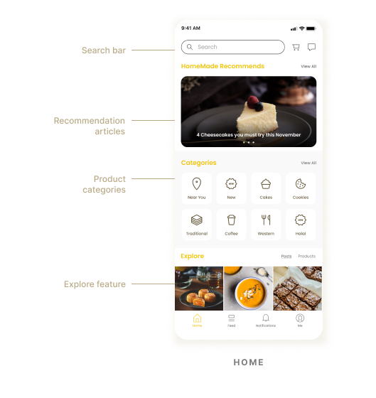 HomeMade is a one-stop-shop mobile application for customers to browse, connect with and buy from local home-based F&B businesses.